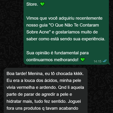 Ou tomar a decisão de investir menos do que o preço de um lanche em um conhecimento que vai te libertar, te dando as ferramentas para finalmente entender sua pele e construir uma paz duradoura com o espelho.